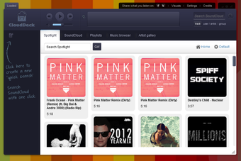 CloudDeck es un vistoso reproductor de música por streaming que se nutre del catálogo del portal SoundCloud, lo que te garantiza miles de canciones famosas y de artistas emergentes gratis.